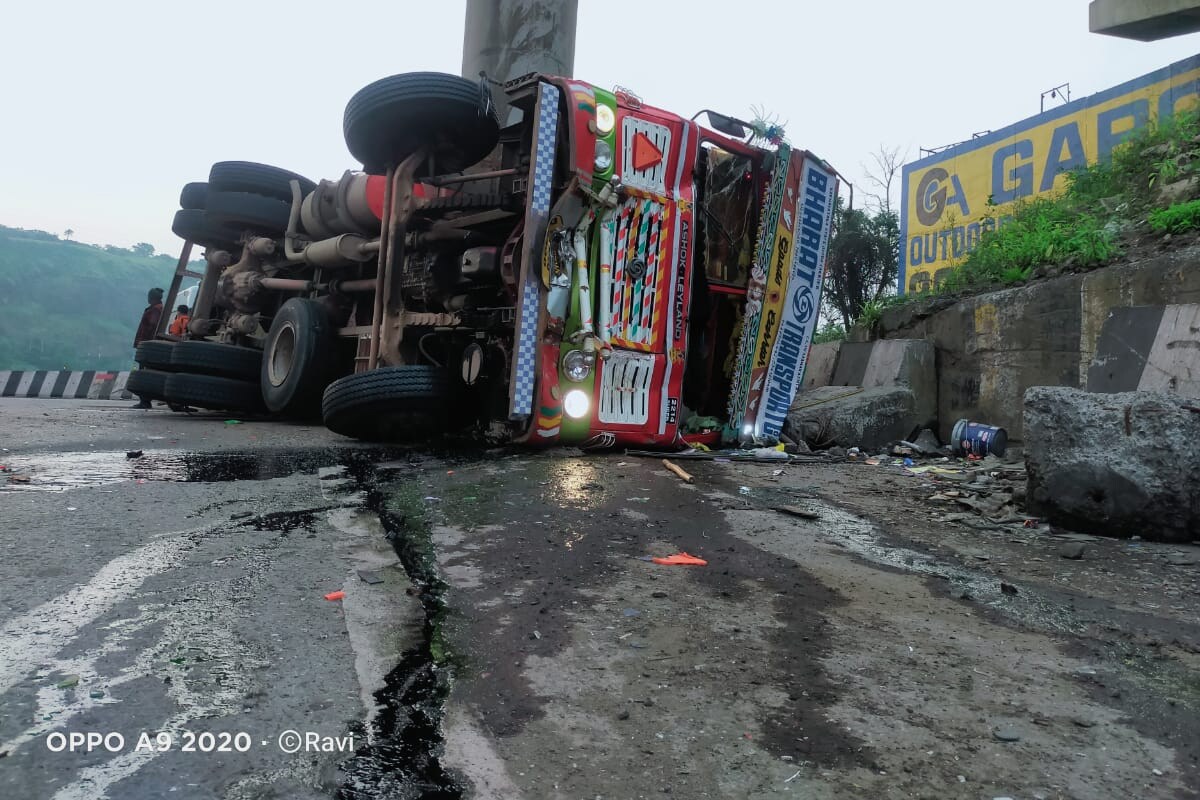 आज सकाळी मुंबई-पुणे एक्स्प्रेस वेवर खंडाळ्याजवळ हा अपघात घडला आहे. कर्नाटकहून मुंबईकडे साखरेचे पोते घेऊन जाणाऱ्या ट्रकचे ब्रेक निकामी झाले.